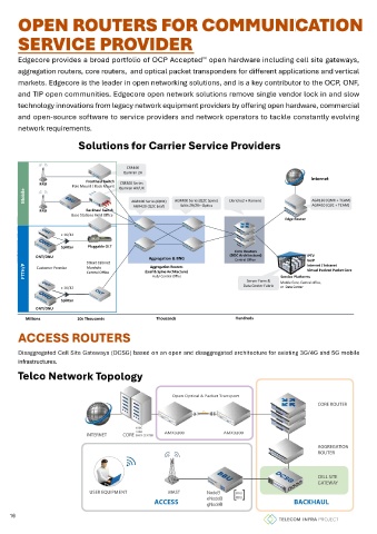 and TIP open communities. Edgecore open network solutions remove single vendor lock in and slow