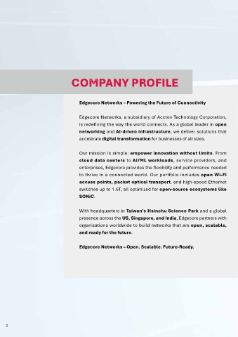 presence across the US, Singapore, and India, Edgecore partners with • L2/L2+/L3 1G/10G/25G/100G …………… 24
