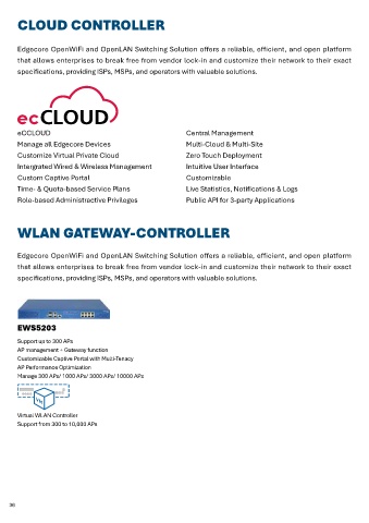 Edgecore OpenWiFi and OpenLAN Switching Solution offers a reliable, efficient, and open platform Optimal Client Filtering, Channel Interference Detection, Seamless Roaming