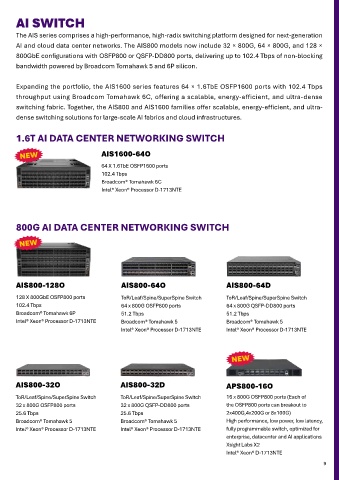 streamline processes and improve results. In this evolving digital Expanding the portfolio, the AIS1600 series features 64 × 1.6TbE OSFP1600 ports with 102.4 Tbps