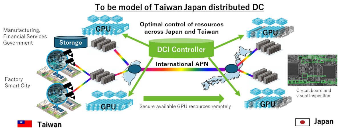 Through the use of these technologies, the four companies plan to collaborate on creating use cases for distributed DC. Specifically, to address Taiwan’s high demand for learning and inference along with challenges like Taiwan’s data center and power shortages, they will utilize Japanese data centers via the international IOWN APN. This will enable resource control across multiple data centers, even if they belong to different countries or operators, using the DCI controller, aiming for the early societal implementation of distributed DCs that allow flexible management of data centers at an international level.